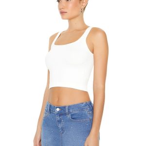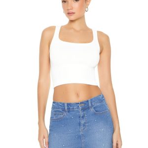 A woven poplin tube top featuring an allover floral print. straight-cut neckline and back. bow chest embellishment. crochet lace scalloped trim. and a cropped hem.