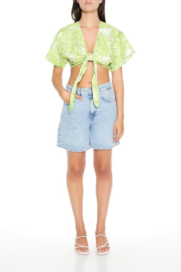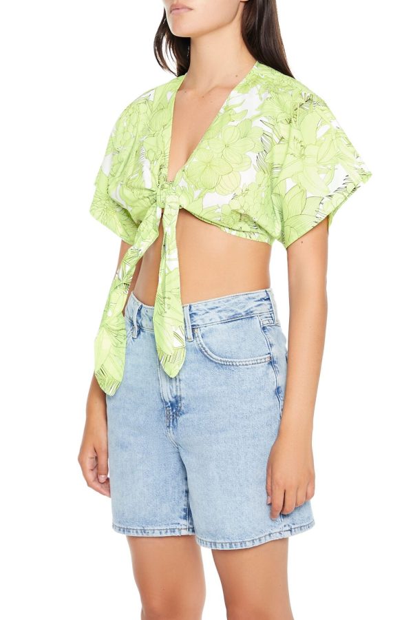 Home Womens Tops Floral Print Tie-Front Crop Top