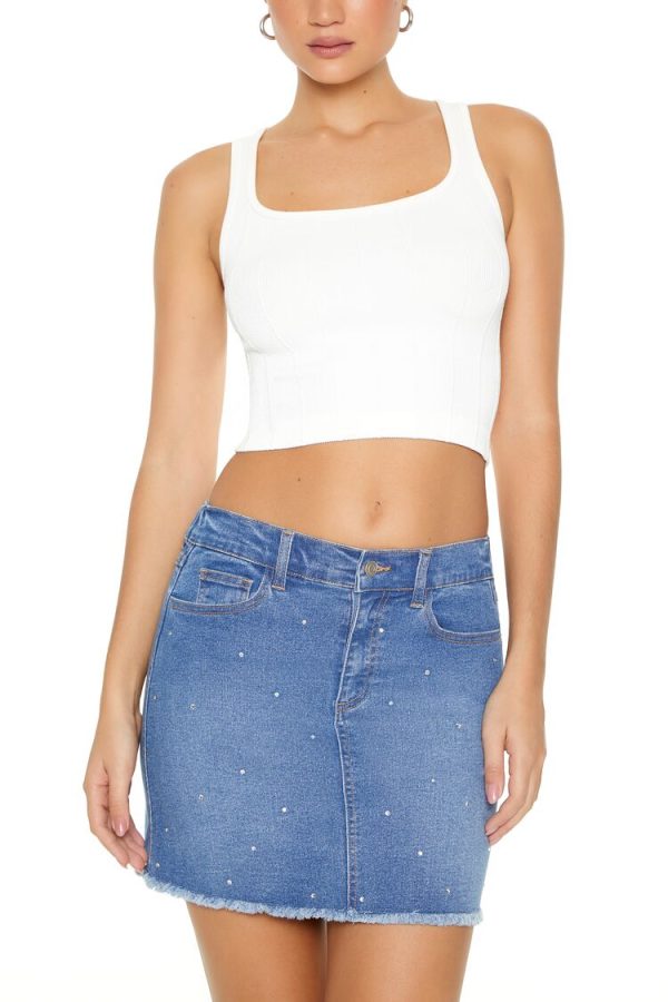 A seamless knit tank top featuring a square-cut neckline. shoulder straps. and a cropped hem.